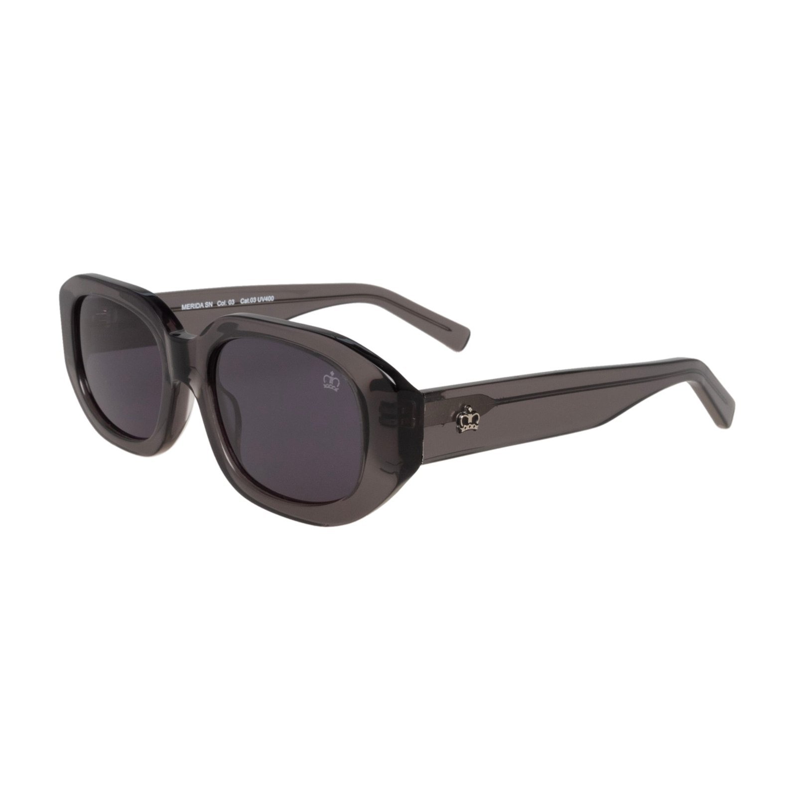 Merida es una gafa de sol de acetato con formato horizontal de tendencia. Canchera. Con patillas de acetato gruesas, con bisagra flex reparable y logotipo metálico.